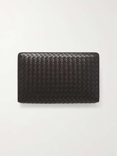 Bottega Veneta’s pouch is crafted from the brand’s iconic Intrecciato leather, instantly recognizable without a logo. Featuring a structured rectangular shape, it’s finished with silver and gold-tone clasp hardware and offers enough space to hold essentials like keys, a phone, and lipstick.