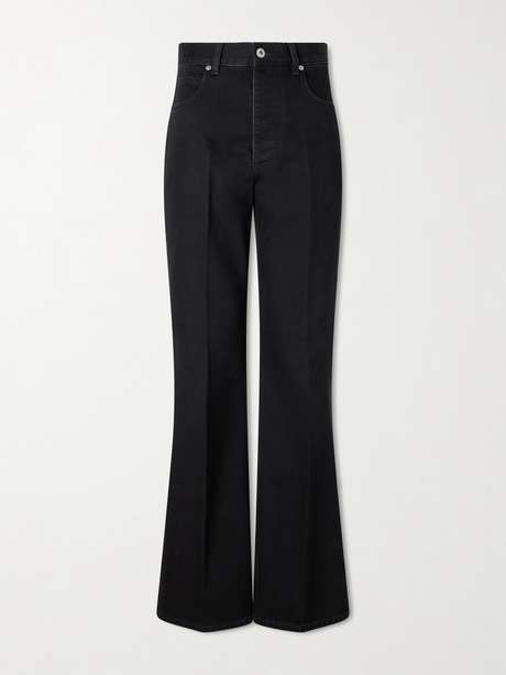 A study in line and continuity, these trousers by Bottega Veneta fall from a clean, uninterrupted waistband into a long leg. The silhouette remains controlled and even, without excess detail, allowing the fabric to hold a steady movement that feels both precise and understated.