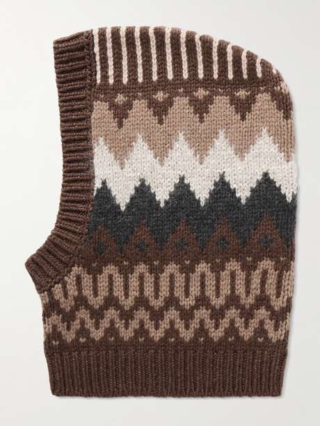 Brunello Cucinelli's snood has been knitted in Italy from cashmere in an earthy Fair Isle pattern. It has ribbed trims and is scattered with sequins for a hint of sparkle.