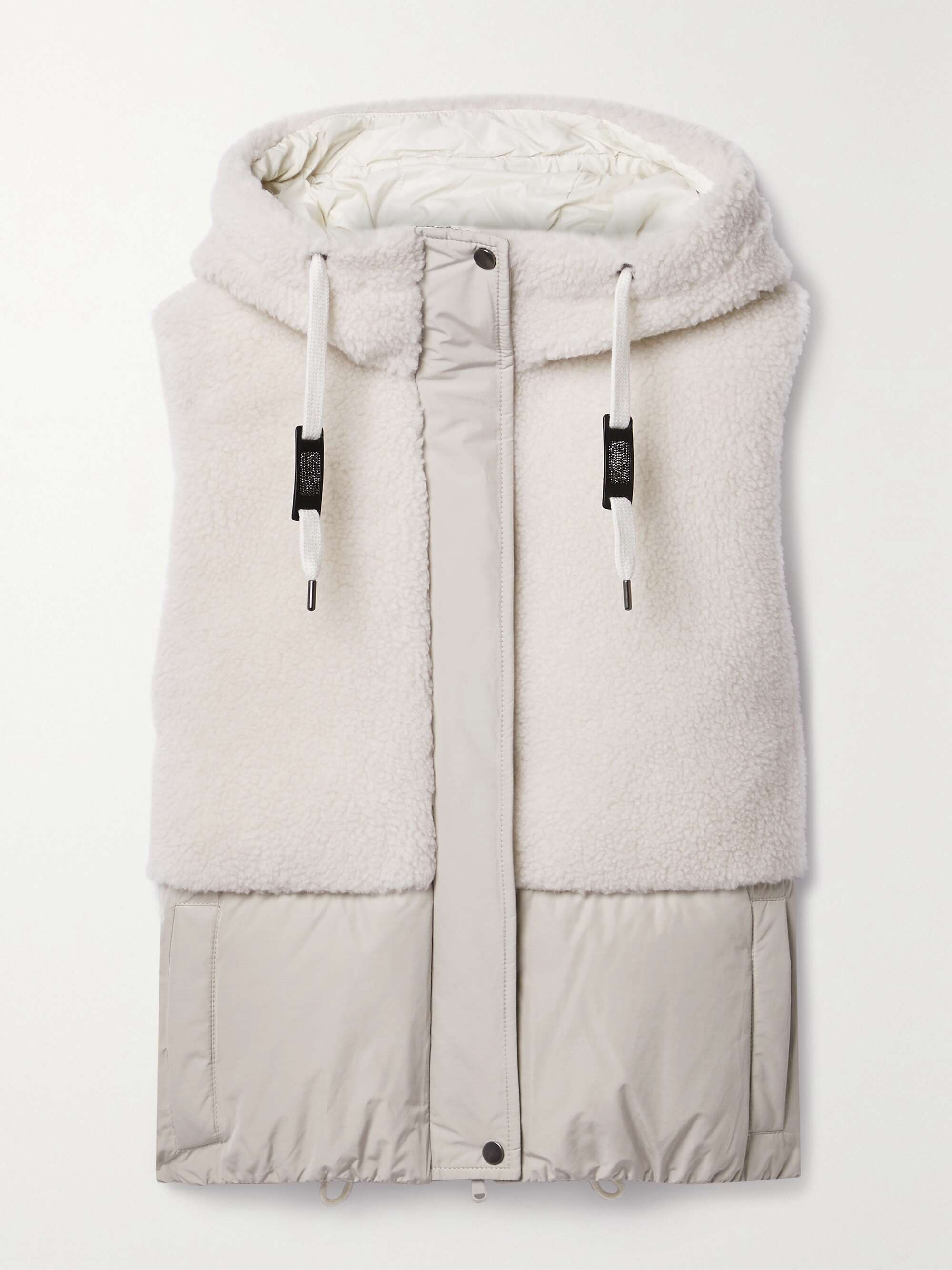 BRUNELLO CUCINELLI Hooded shell-trimmed wool-blend fleece down ski vest