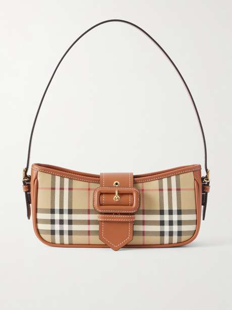 BURBERRY Leather-trimmed checked canvas shoulder bag