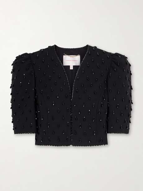 CAROLINA HERRERA Cropped crystal-embellished wool-blend jacket