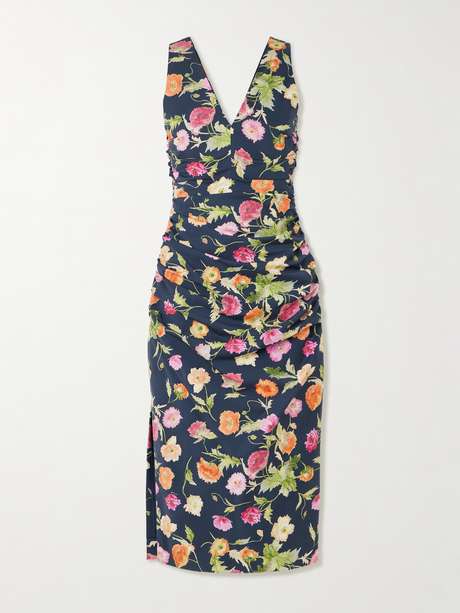 CAROLINA HERRERA Gathered gathered floral-print stretch-cotton midi dress
