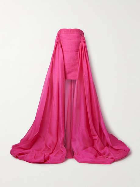 Carolina Herrera's Fall '25 collection explores the idea of "ephemeral beauty", and this dress captures it perfectly. Made from vibrant fuchsia silk-crepe, it's pintucked throughout the slim silhouette for texture and structure, while sheer organza cape-effect panels billow behind with every step. Style it with tonal heels to mirror the runway look.