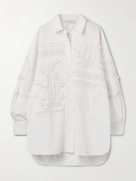 Leave it to Carolina Herrera to make a classic white shirt feel elevated and special. Cut from brushed cotton-blend poplin in an oversized shape, it's embroidered with an intricate motif and embellished with tonal pompoms.