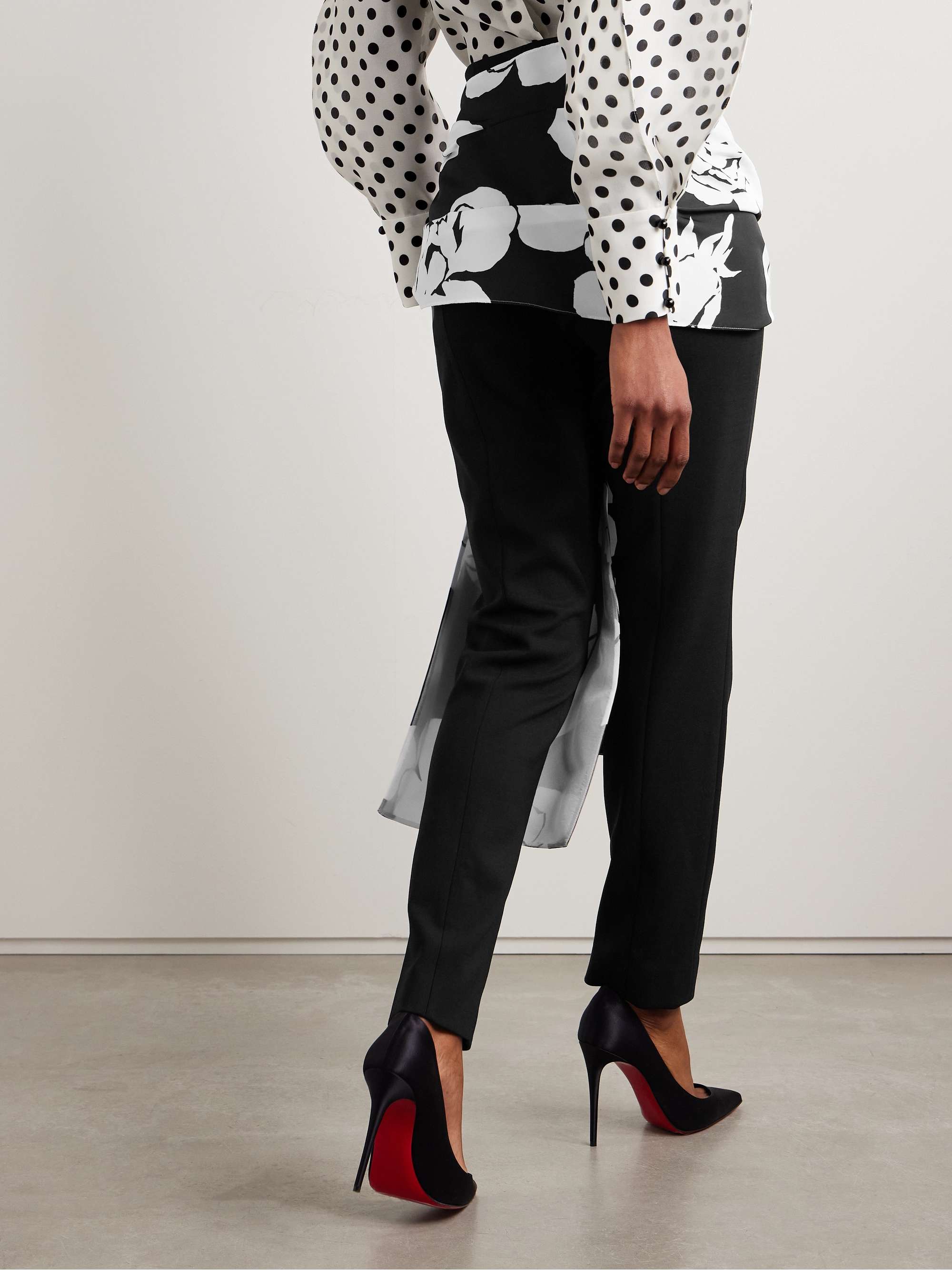CAROLINA HERRERA Draped floral-print faille and crepe slim-leg pants