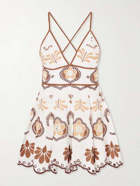 Charo Ruiz's 'Jela' dress embodies the label's sunlit aesthetic. Made from broderie anglaise cotton-blend, it has a fitted bodice and flares to a softly floaty mini skirt.