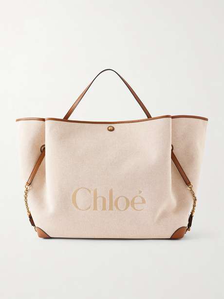 CHLOÉ Leather-trimmed canvas tote bag