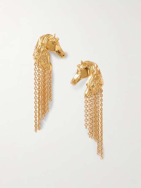 Chloé's earrings nod to the label's equestrian inspirations. Made from polished gold-tone brass, they're cast in the shape of horses and strung with swishy fringing.