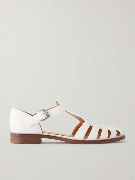 Church's 'Kelsey' sandals have been made in Italy from smooth strips of white leather that are meticulously woven to create a cage-like silhouette. They're set on cushioned footbeds and 20mm stacked wood heels. The adjustable buckle-fastening strap ensures a comfortable fit.