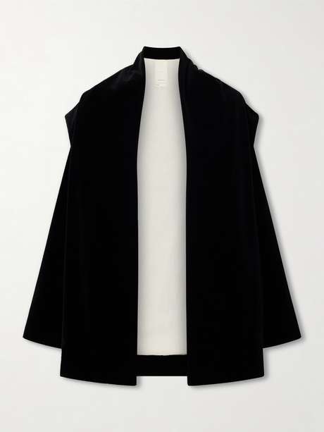 This evening jacket by Colleen Allen is crafted from cotton-blend velvet for a plush, softly structured finish. The silhouette drapes with ease, balancing sculptural volume and fluid movement. Layer it over a slip dress for evening occasions.