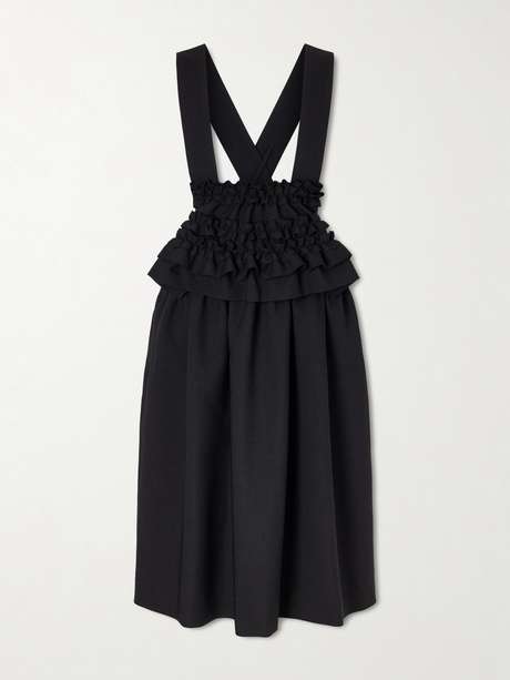 Comme des Garçons’s dress is part of the Spring ’26 'The Damaging of Perfect Things' collection, where beauty is found in imperfect, fractured forms. Made from stretch georgette, it has a pinafore-like silhouette with two distinctive straps and falls to a midi length. Style it over a ruffled blouse.