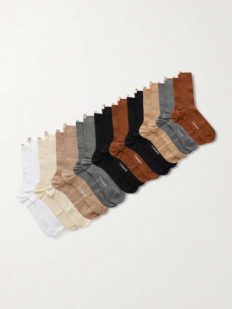COMME SI The Yves set of five ribbed cotton-blend socks