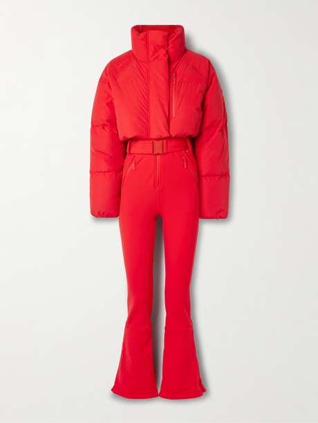 Cordova's 'Myoko' ski suit will look so chic on the slopes. It's designed with a cropped water-repellent shell jacket that's padded and quilted with down for warmth and fleece-lined jersey pants with zipped hems that'll fit comfortably over your boots.
