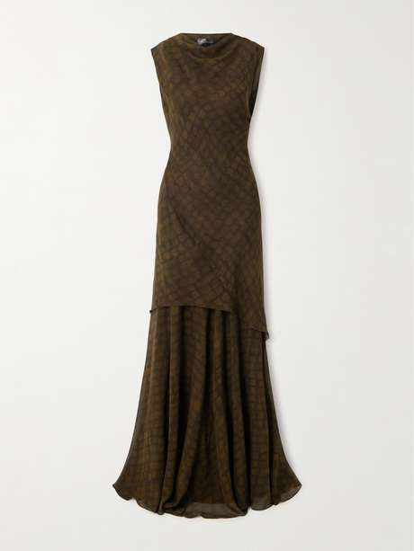 CORTANA Copal draped layered printed silk-georgette maxi dress