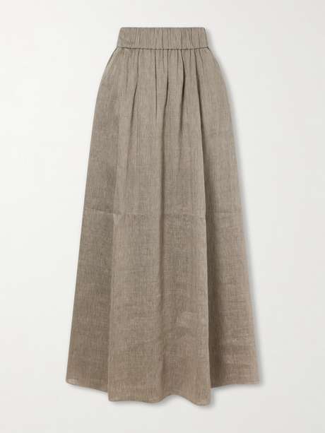 CORTANA Aria striped linen and silk-blend maxi skirt