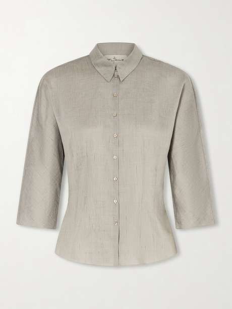Cut from lightweight striped linen, the 'Theresa' shirt by Cortana is shaped to a relaxed silhouette with a softly structured feel. The understated design and airy texture evoke effortless elegance. Style it with coordinating pieces or simple pants for everyday wear.