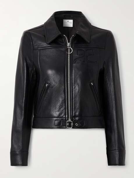 Courrèges takes an understated and refined approach to the classic leather jacket. Embossed with the logo at the chest, it's designed for a slim fit and has zipped pockets and a buckled hem. Wear yours with tailoring or jeans.