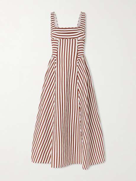 Cult Gaia's 'Carla' dress is perfect for picnics and summer getaways. Woven with linen, wool and silk, it's patterned with distinctive stripes and has an elegant square neckline. It's completed with a fitted bodice, an exposed back and a buckle.