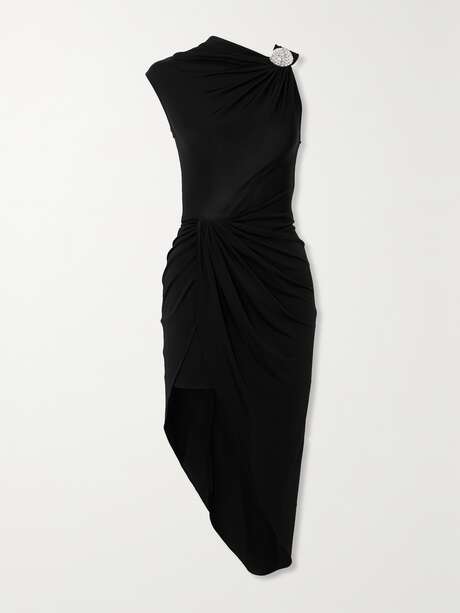 DAVID KOMA Asymmetric ruched crystal-embellished stretch-jersey dress