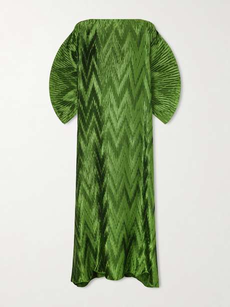 Dima Ayad's designs are both elegant and effortless to wear. Made from shiny plissé satin, this cocoon-shaped gown features a tonal chevron pattern that stands out from the pleats. Style it with gold accessories to elevate your look.