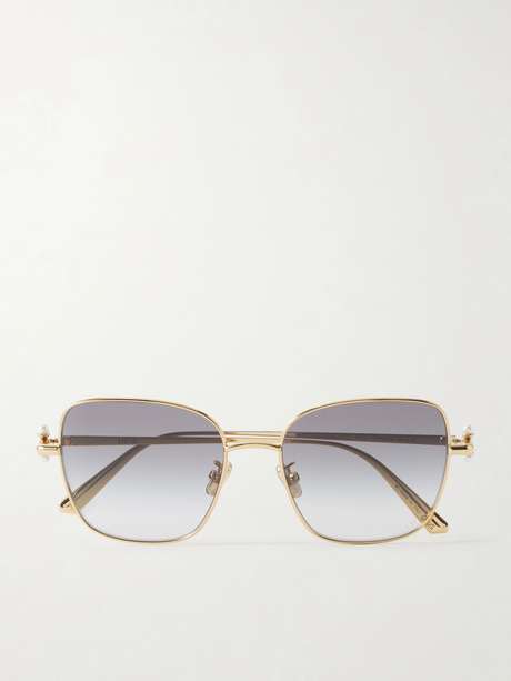 Dior Eyewear's 'DiorTribales S1U' sunglasses draw inspiration from the label's iconic use of pearls. They're made from lightweight gold-tone metal and have chic squared frames with faux pearl tips.