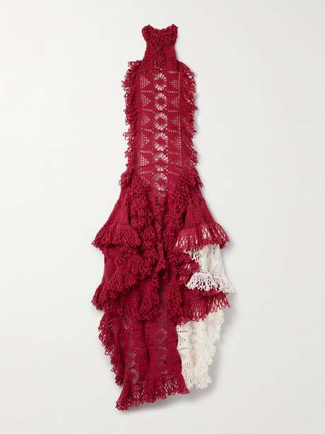 Diotima's 'Spade' dress has been carefully crocheted by hand, making its elaborate design all the more impressive. It's made from red and white merino wool-blend and has a figure-hugging fit traced with cascading ruffles.