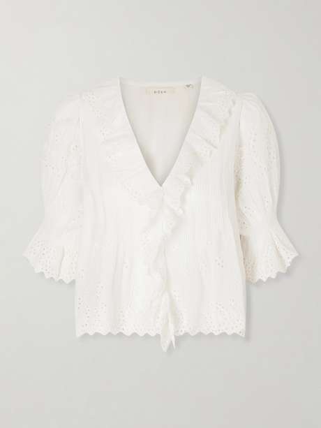DÔEN Henri ruffled pintucked broderie anglaise cotton top