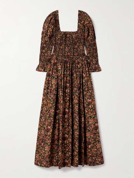 DÔEN Bijou shirred floral-print organic cotton-voile midi dress