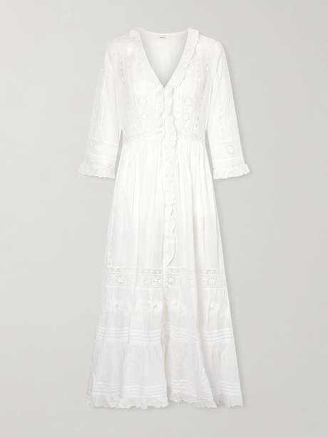 DÔEN's 'Clemencia' midi dress captures the sun-washed spirit of the brand's native California. Made from airy organic cotton-voile, it's detailed with floral lace and broderie anglaise throughout. Delicate ruffles at the sleeves and hem only add to the ethereal feel.