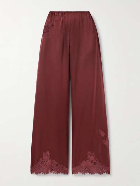 DÔEN’s ‘Lavon’ pants are cut from fluid silk-satin in a rich ‘Huckleberry’ hue that adds depth and elegance. Tonal lace trims at the waistband and wide hems bring a soft, romantic touch, while the elasticated waist ensures an easy, comfortable fit.