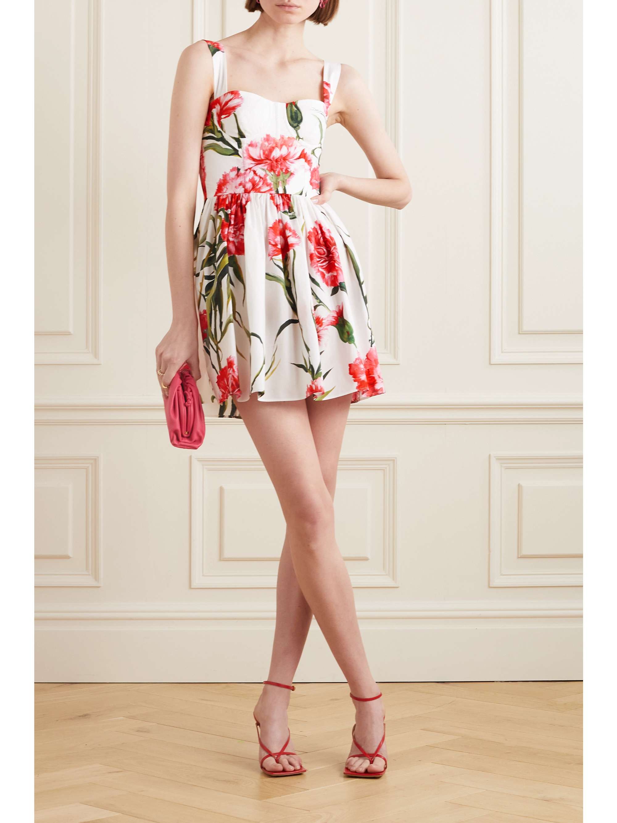 DOLCE&GABBANA Pleated floral-print cotton-poplin mini dress