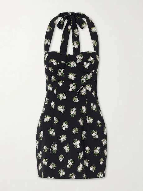 Dolce & Gabbana’s collections are defined by bold femininity, ornate embellishments, and confident silhouettes. This mini dress channels ’50s-inspired glamour with its fitted silhouette and halterneck design. It’s patterned with romantic blooming roses, enhancing its distinctly ladylike allure.