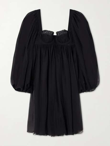 Dolce&Gabbana's ethereal dress captures such a romantic mood. Cut from silk and cotton-blend voile, it features lace-trimmed cups and softly billowing sleeves that create fluid movement. Style it with minimal heels and delicate jewelry.