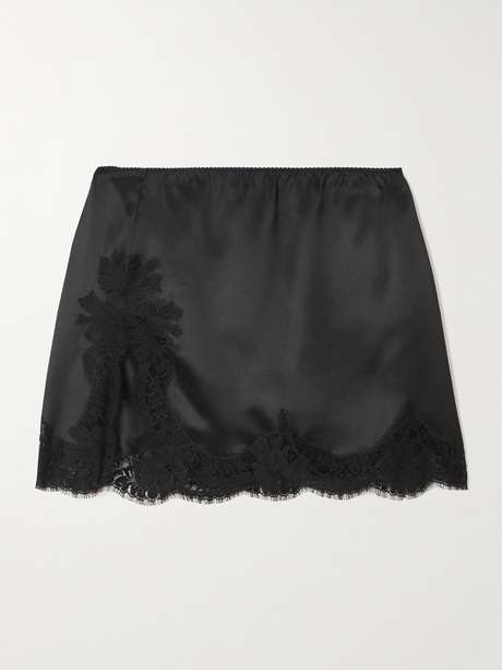 Dolce&Gabbana's mini skirt blends classic elegance with a romantic touch. It's been made in Italy from smooth cotton-blend satin trimmed with delicate lace and has a subtle split hem.