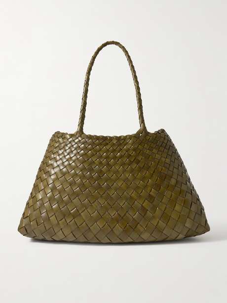 Dragon Diffusion's bags are inspired by traditional woven baskets used for hundreds of years around the world. This 'Santa Croce Big' tote is handmade from vegetable-dyed strips of leather that get thinner towards the top to achieve the elegantly curved trapeze shape. Inside you'll find a hand-sewn St. Christopher medal charm, believed to manifest protection on your travels and the brand's marker of quality and authenticity.