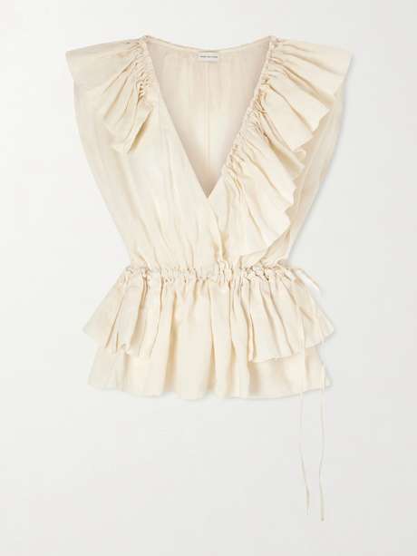 DRIES VAN NOTEN Ruffled gathered ramie top
