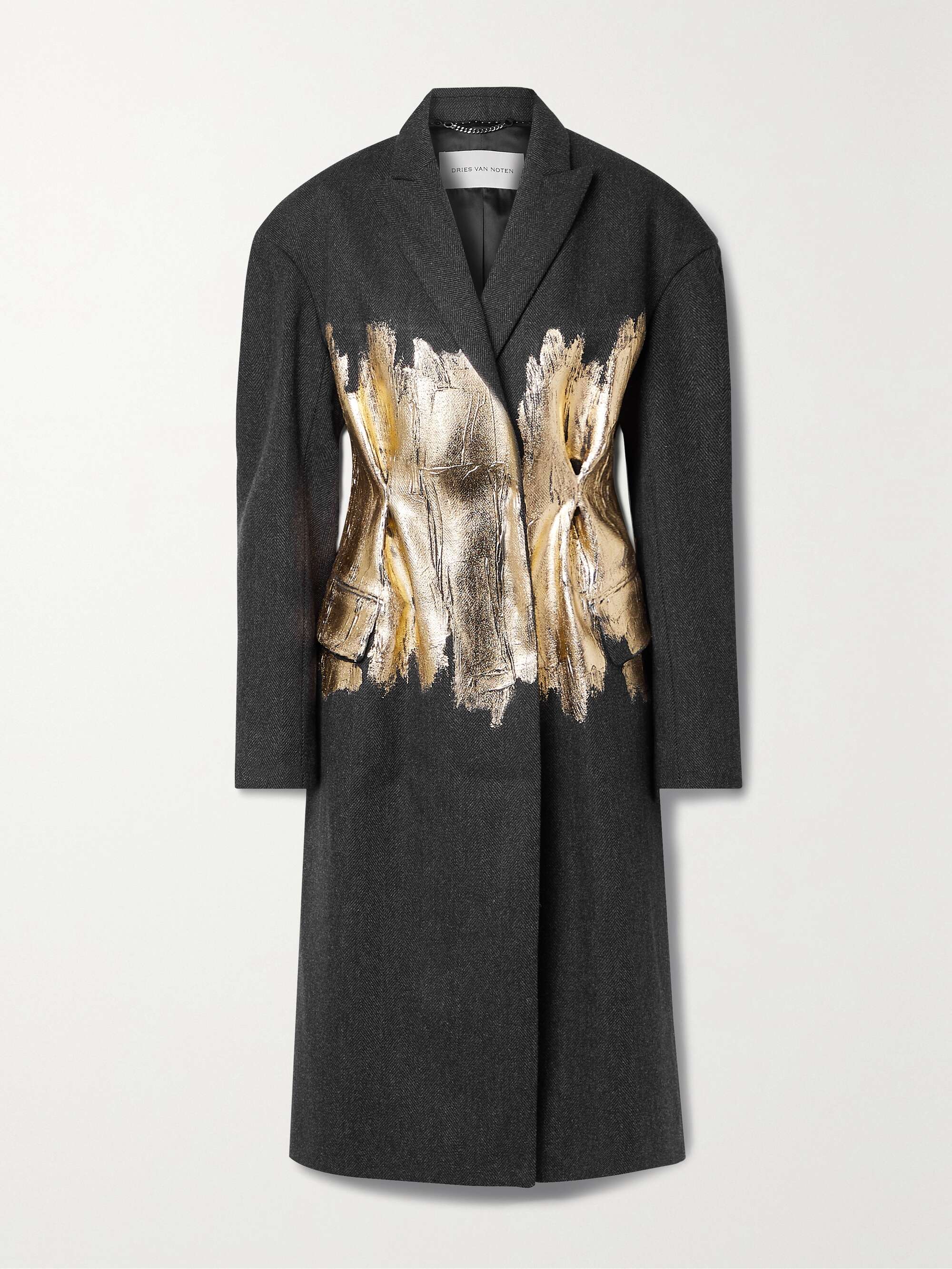 DRIES VAN NOTEN Metallic-trimmed wool-twill coat