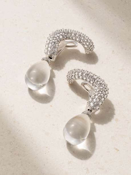DYNE Elixia Earcrawler 18-karat white gold, diamond and rock crystal clip earrings