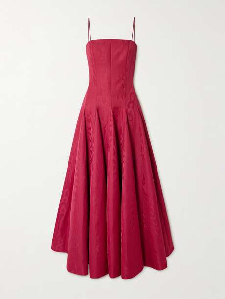 Emilia Wickstead's 'Gracia' gown is made from recycled-moire with a lustrous and distinctive watered finish. It's cut with a fitted bodice and flares from the hip to a pleated skirt that sways with your movement. The thin straps and square neckline frame your décolletage just beautifully.