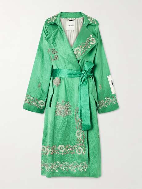 ERDEM Crystal-embellished textured-satin coat