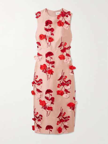 ERDEM Appliquéd chiffon-trimmed embroidered mikado midi dress
