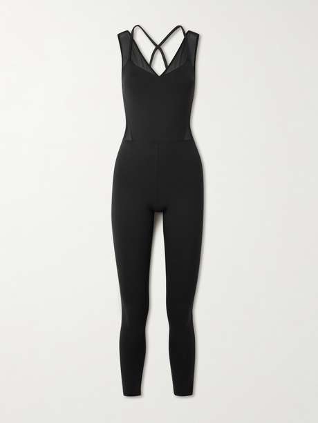 Up your Pilates game with Eres' sleek 'Devi' jumpsuit, then layer a sweater over when you've got errands to run after class. Made from stretch-jersey for a close fit, it's trimmed with sheer tulle and has slim straps that crossover at the open back. Removable pads at the bust offer gentle shape and support.