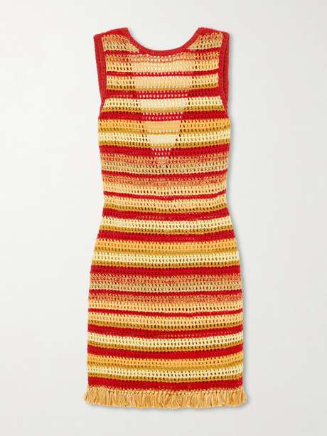 ESCVDO Nevado fringed striped crocheted cotton mini dress