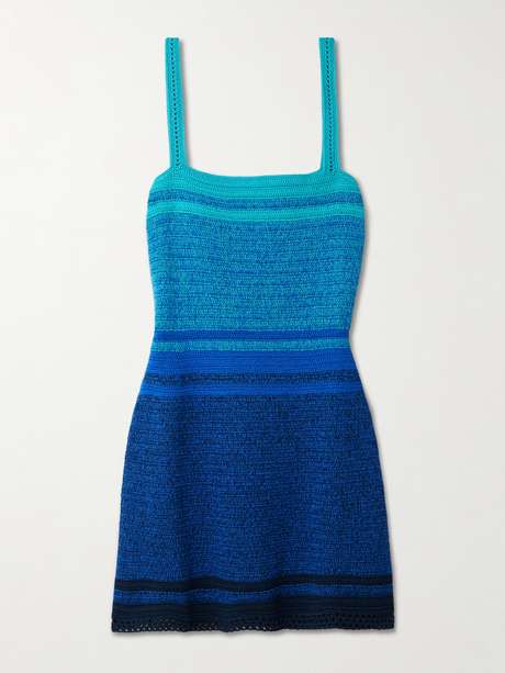 ESCVDO's collections beautifully echo the colorful landscape of its native Peru. This 'Plumar' dress is hand crocheted from cotton with a squared neckline and has a beautiful ombré effect that deepens into the swishy mini skirt.