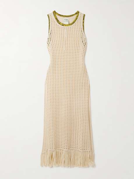 ESCVDO Atuq fringed open-knit cotton midi dress
