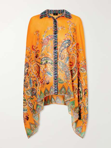 This ramie blouse by Etro reworks the house’s signature motif into a draped silhouette. Cut from ramie to fall with movement, the vivid print flows uninterrupted across the fabric, while the soft structure enhances its sense of ease and expressive character.