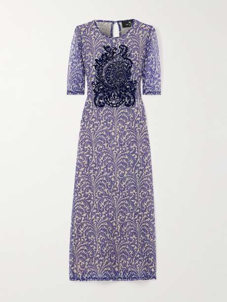 ETRO Flocked printed mesh midi dress