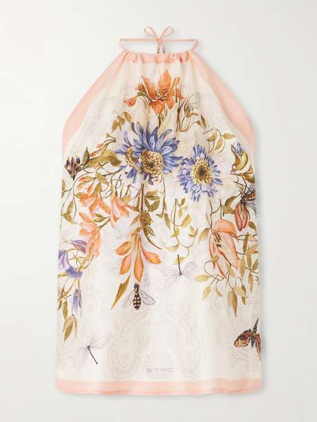 Printed with a vintage botanical scene, Etro's top is inspired by bandana styles. It's been cut in Italy from fluid silk-voile and has a chic halter neckline with slim ties.