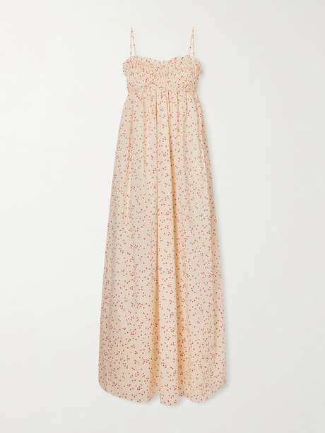 FAITHFULL Presa shirred ruffled polka-dot cotton-voile maxi dress